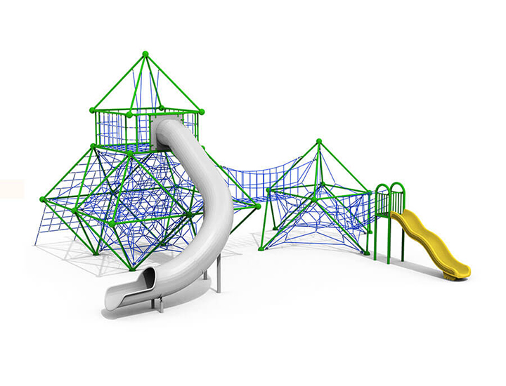 스타네트 II RC-805-S3은 로프캠프의 역동적인 네트 놀이 구조물로, 공중 모험을 고취하도록 설계되었습니다. 거미줄 같은 형태와 중앙 트램폴린을 통해 아이들이 오르고, 튀어 오르고, 탐험하도록 장려하여 활동적인 놀이를 통해 근력, 균형감각, 상상력을 향상시킵니다.