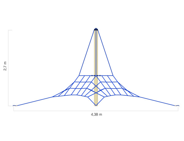 타워네트 I RC-101-1은 로프캠프의 역동적인 네트 놀이 구조물로, 공중 모험을 고취하도록 설계되었습니다. 거미줄 같은 형태와 중앙 트램폴린을 통해 아이들이 오르고, 튀어 오르고, 탐험하도록 장려하여 활동적인 놀이를 통해 근력, 균형감각, 상상력을 향상시킵니다.
