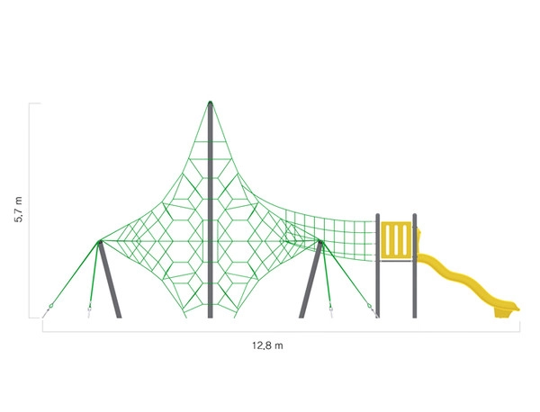 타워플러스 RC-104-S는 로프캠프의 역동적인 네트 놀이 구조물로, 공중 모험을 고취하도록 설계되었습니다. 거미줄 같은 형태와 중앙 트램폴린을 통해 아이들이 오르고, 튀어 오르고, 탐험하도록 장려하여 활동적인 놀이를 통해 근력, 균형감각, 상상력을 향상시킵니다.