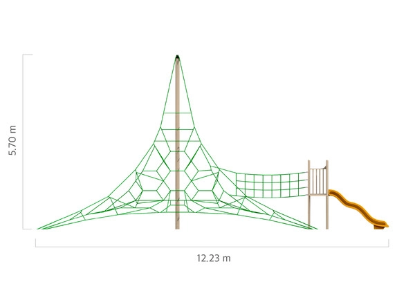 타워플러스 RC-102-S는 로프캠프의 역동적인 네트 놀이 구조물로, 공중 모험을 고취하도록 설계되었습니다. 거미줄 같은 형태와 중앙 트램폴린을 통해 아이들이 오르고, 튀어 오르고, 탐험하도록 장려하여 활동적인 놀이를 통해 근력, 균형감각, 상상력을 향상시킵니다.